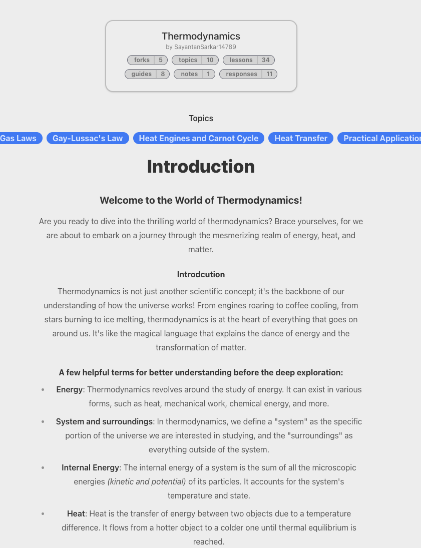As we are seeing our first cohort exploring Poetry to Thermodynamics to Japanese Language to BlackHole physics, we expect the explorations to get unwieldy quickly. So, we have added a paged recent exploration list and favorites. You can now learn without getting lost.