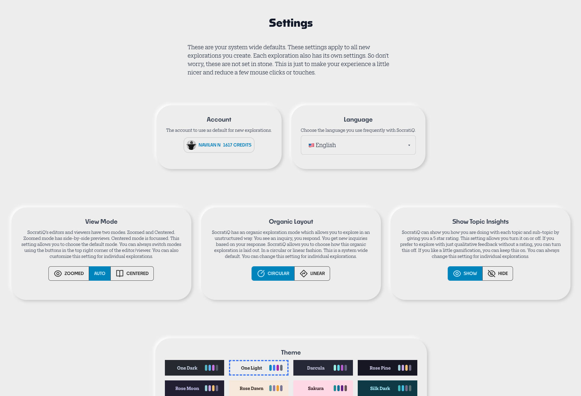 We are very proud of the fact that SocratiQ allows for a lot of customization at the workspace level. You can change the theme, the layout styles and how the views appear all per workspace.