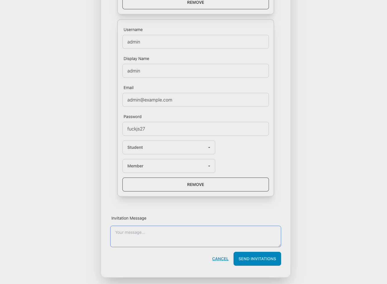 Add comma separated emails and SocratiQ will automatically generate usernames, display names and passwords. You can edit them as you please and hit a button to get them all into your Organization.