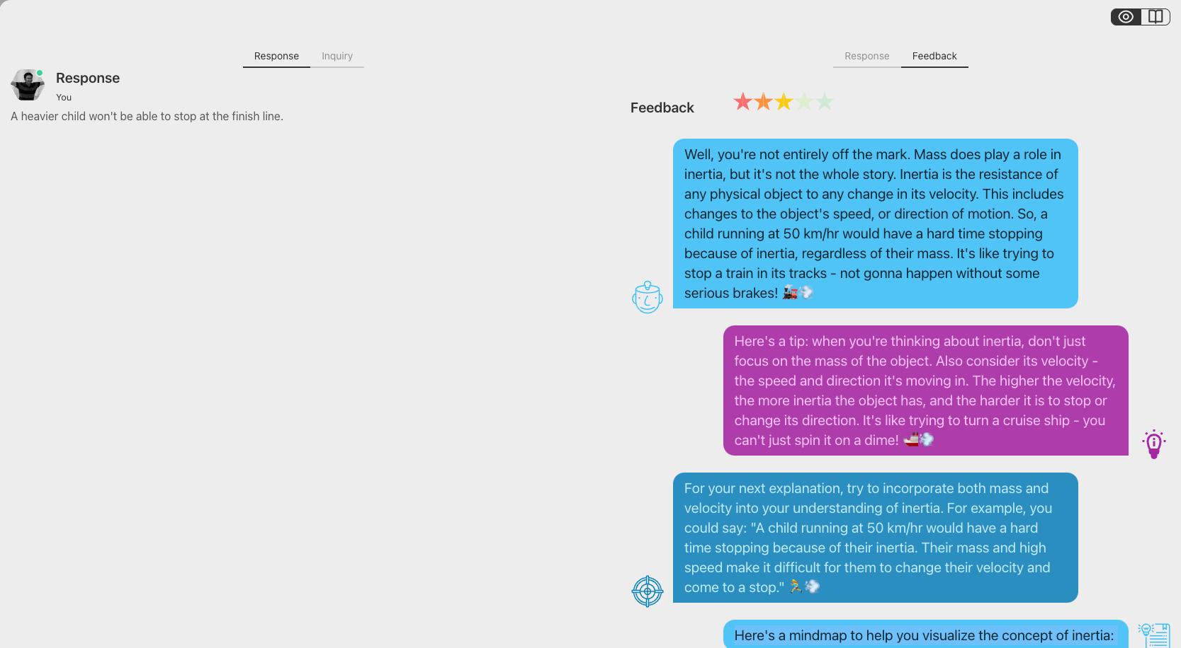 If you look closely at the above screenshot, you can see that the intent provided by SocratiQ is also an interesting type of feedback. It is an assessment of where the student is in their understanding of the topic.