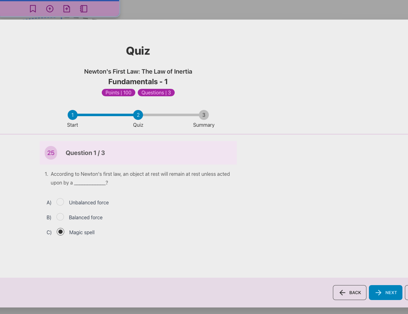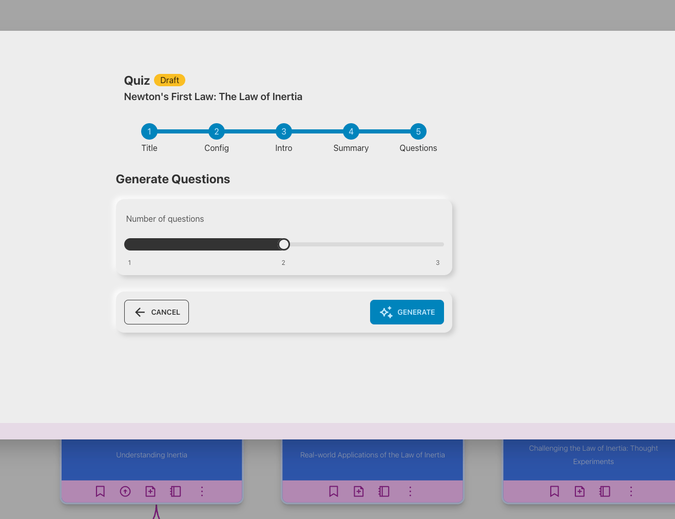 Once you are done with the configuration, you can generate the quiz. SocratiQ will generate upto 3 questions at a time for now. We will be increasing this limit once the feature is fine tuned to satisfaction.