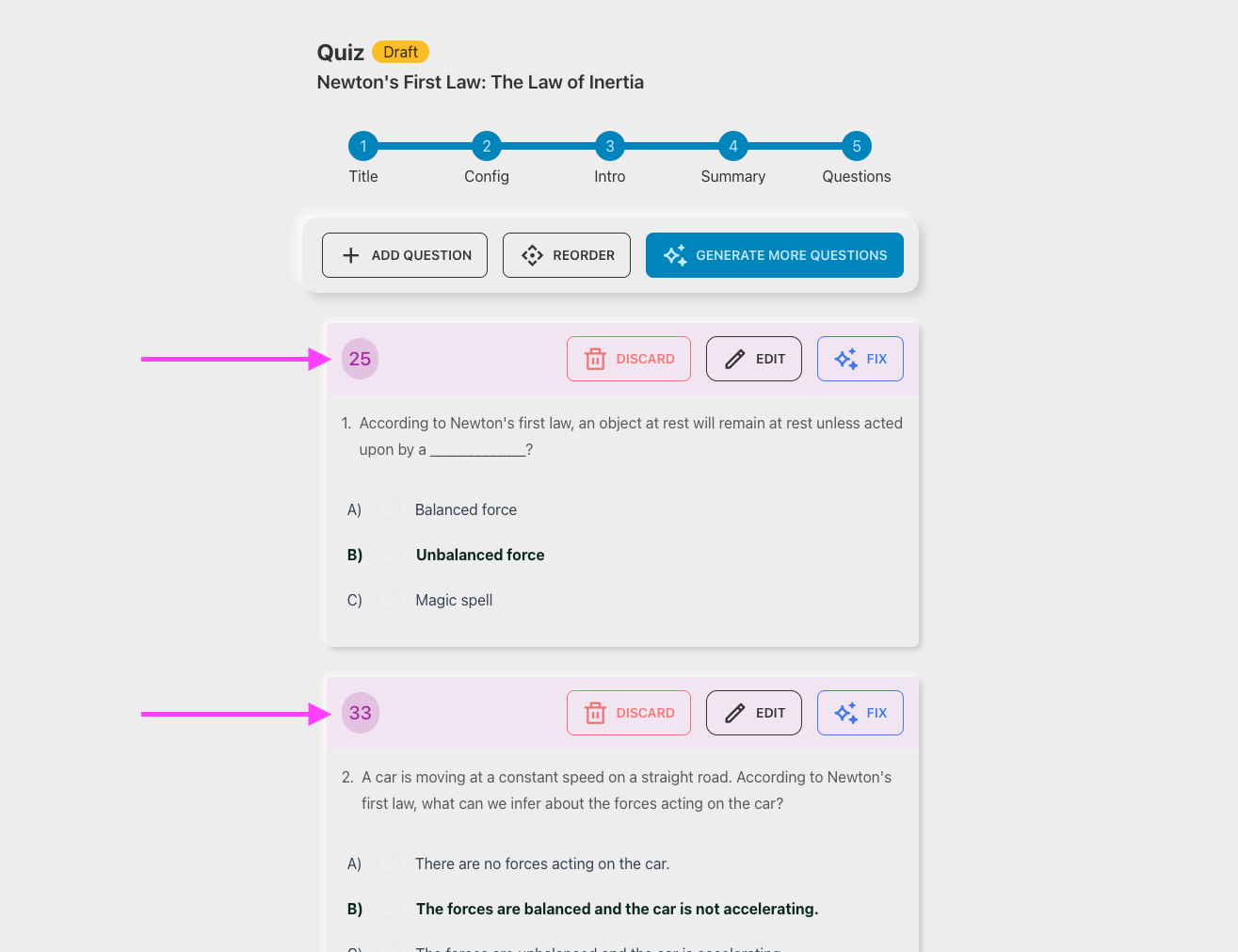 Step 5: Generate, Reorder and Edit Questions