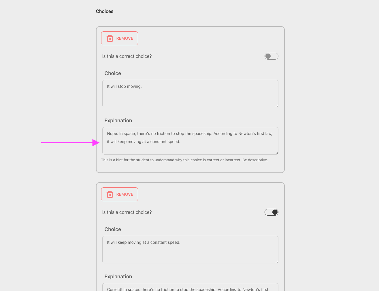 SocratiQ diligently uses this field to provide not just actionable feedback, but also follow-up questions to students.