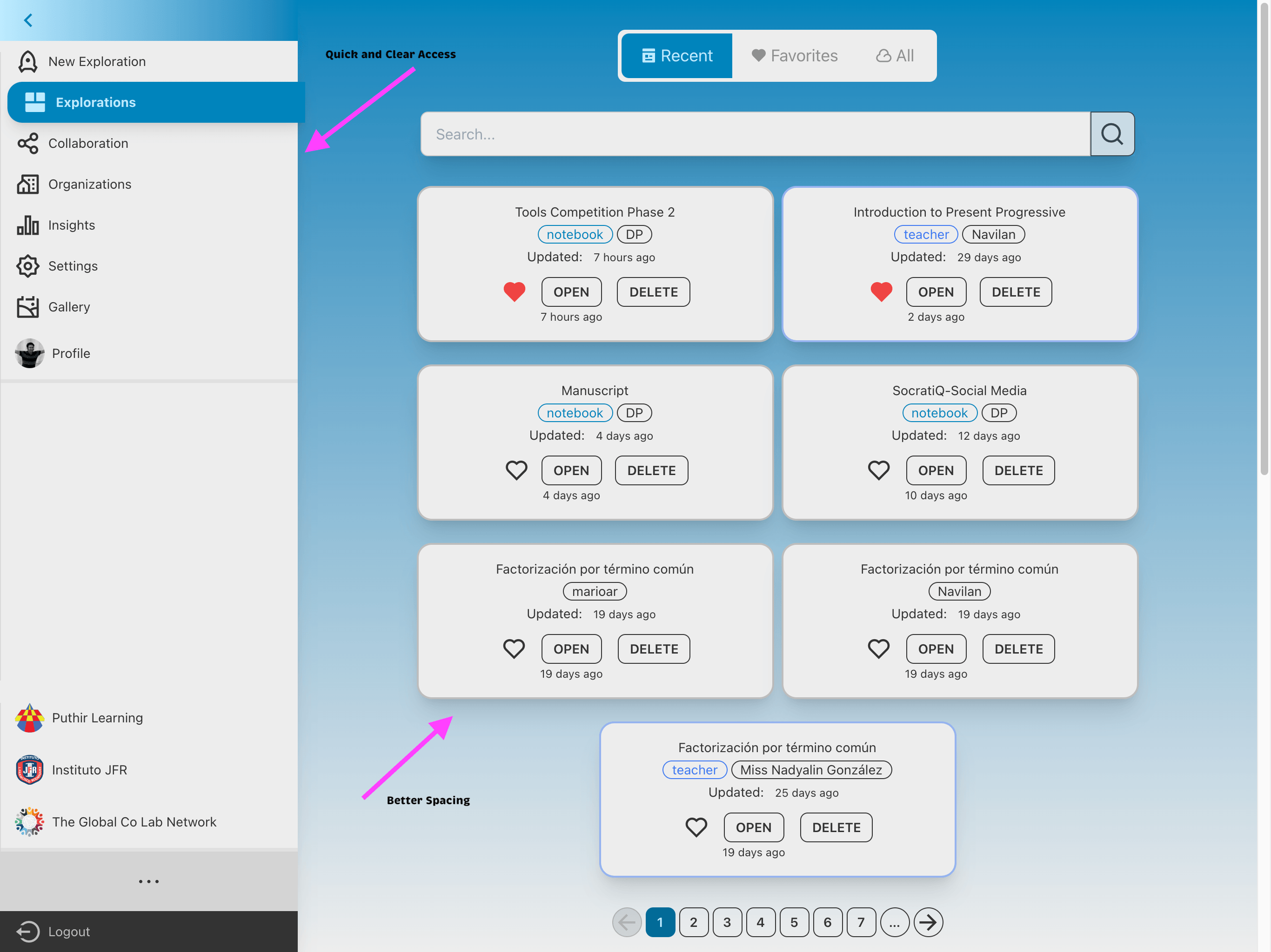 Focus, clarity & organization It is now easy to access your workspaces, create new explorations or check your overall insights.
