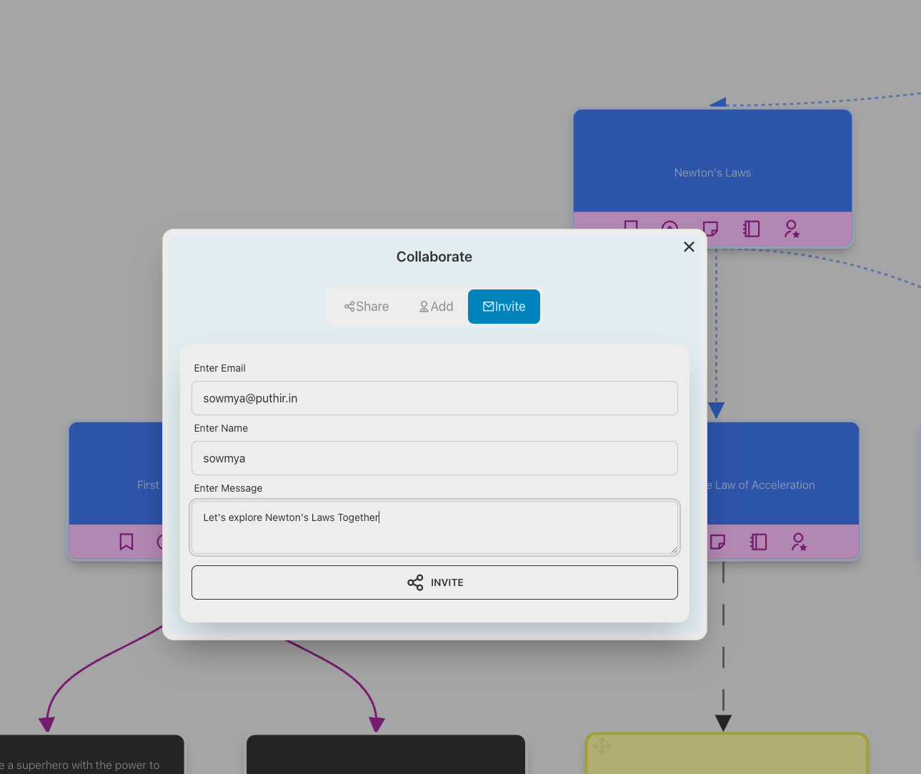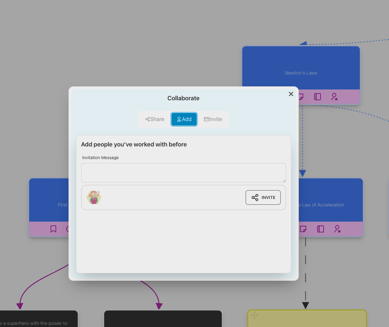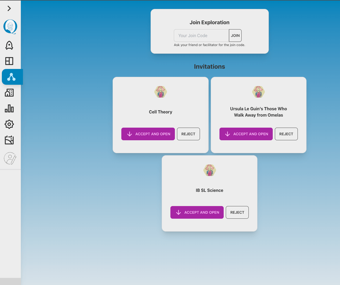 SocratiQ’s collaboration features involved sharing a join code through other communication mediums. We believe this is the most non-intrusive way to invite people to collaborate with you.